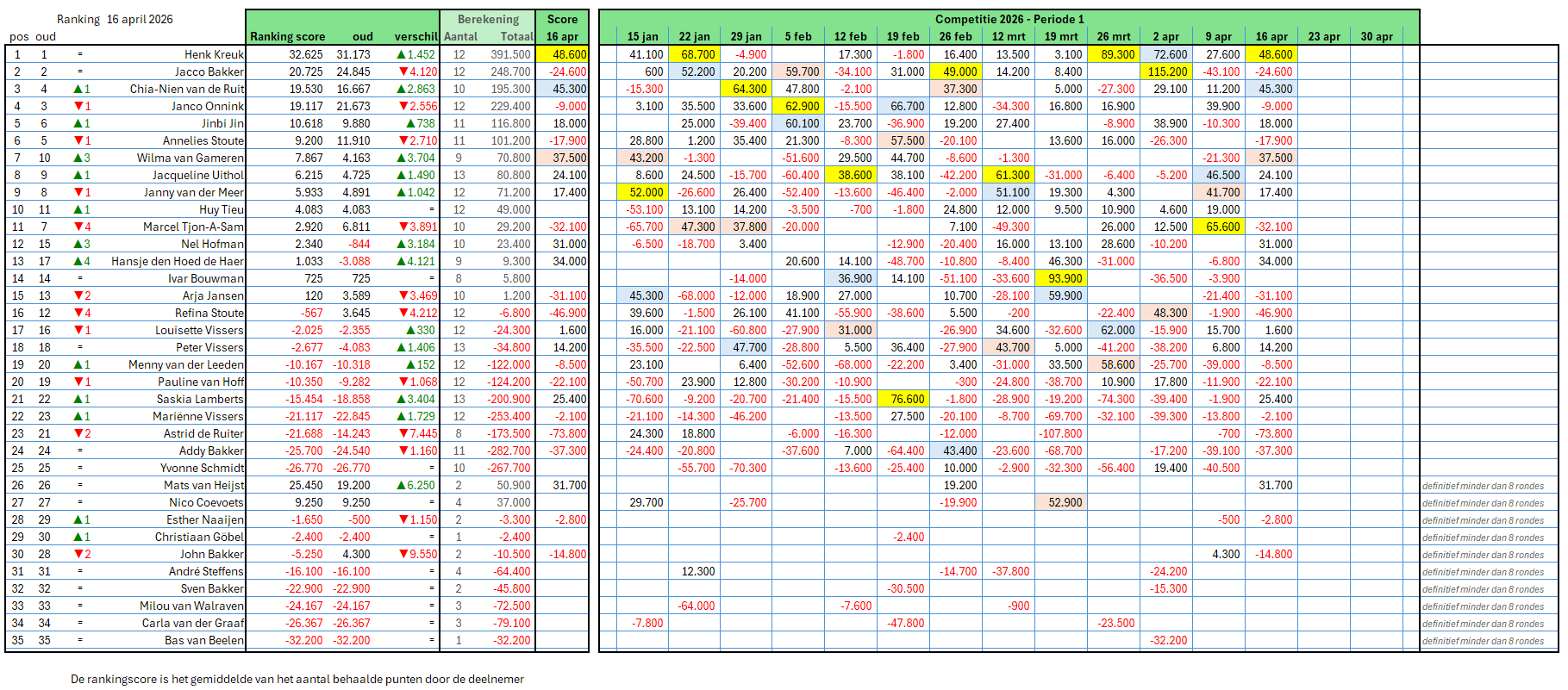 De volledige uitslag van periode 1 is HIER te vinden